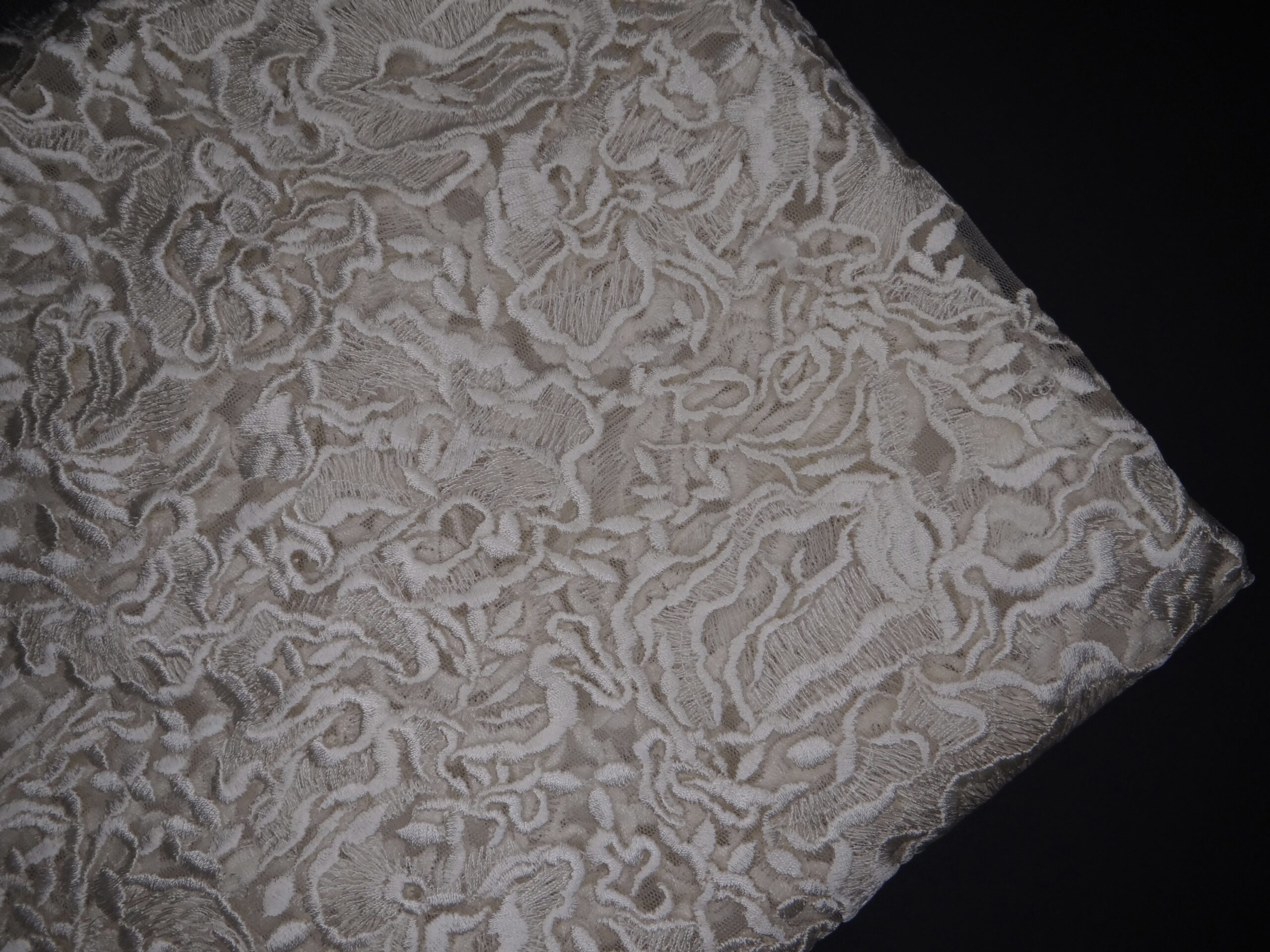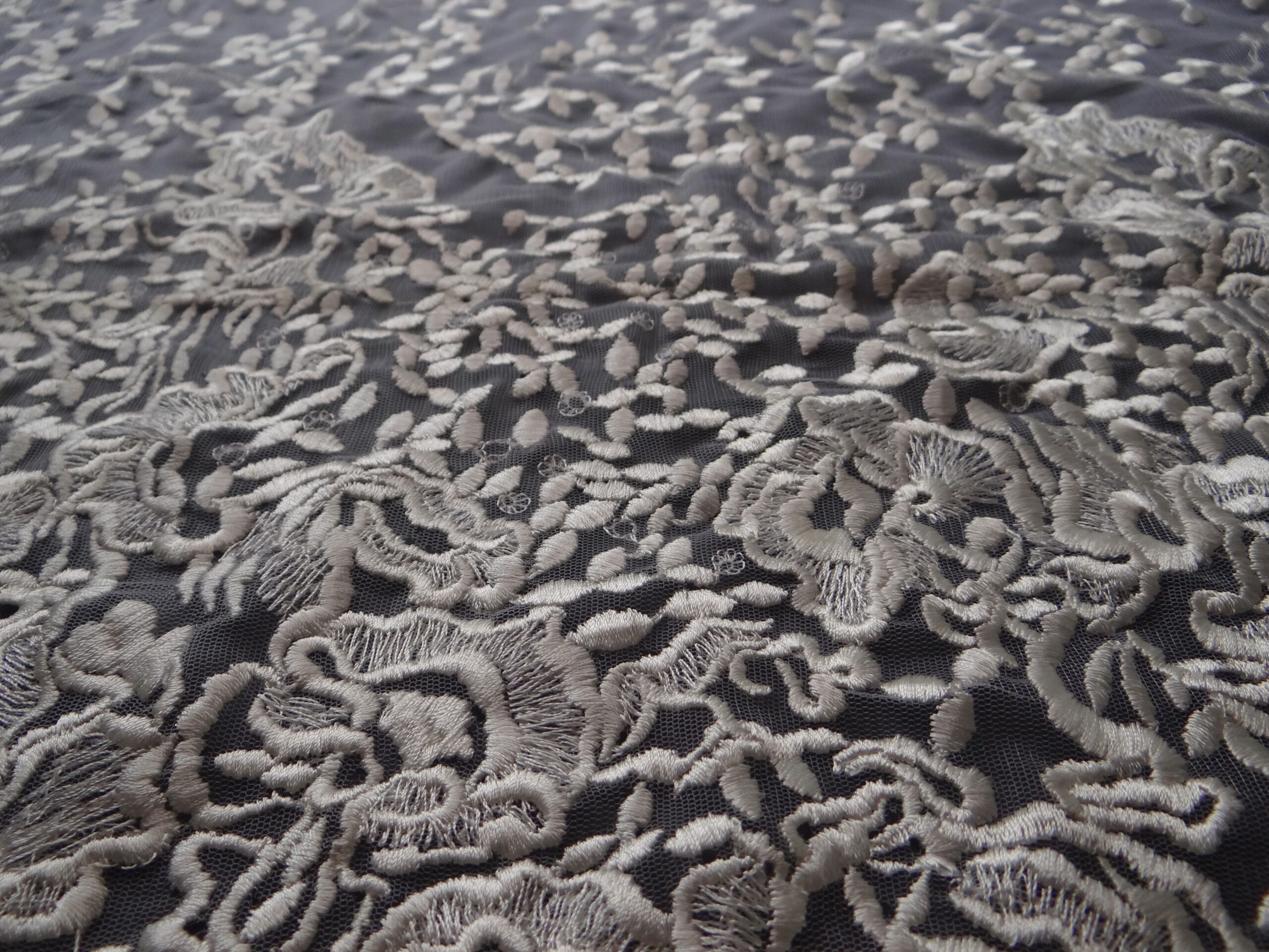 This beautiful embroidered fabric depicts alluring patterns of leaves and gathered flowers over a butter-smooth net for the ultimate skin comfort. This has gathered flowers on one side which scatters leaves towards the end of the fabrics. The designs are thick enough to be visible from afar.
