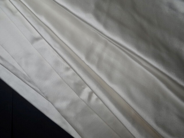 Buttery soft fabric that stiffs beautifully. With high shine, it’s perfect for creating pleates and textures. Scrunches marvellously and is absolutely silky on the skin. It has high opacity with a brilliant shine.