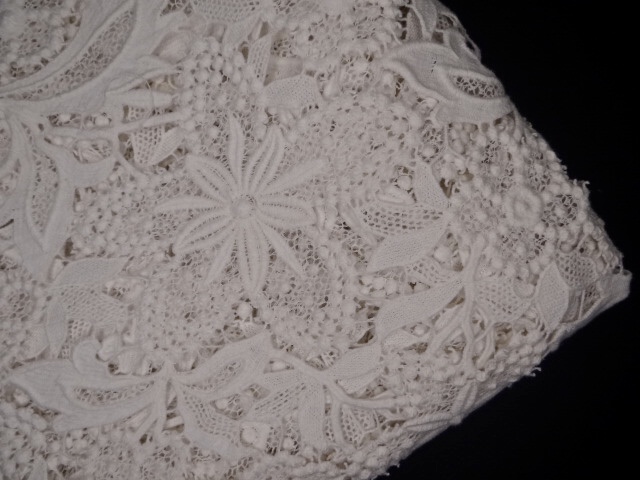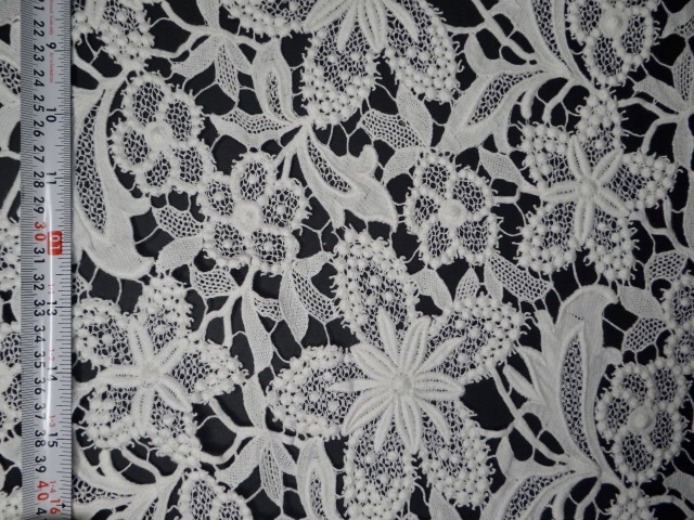 A heavy crochet fabric with patterns of florals embedded throughout to give it a more fuller look. Can be used in multiple ways for construction of bridal attire.