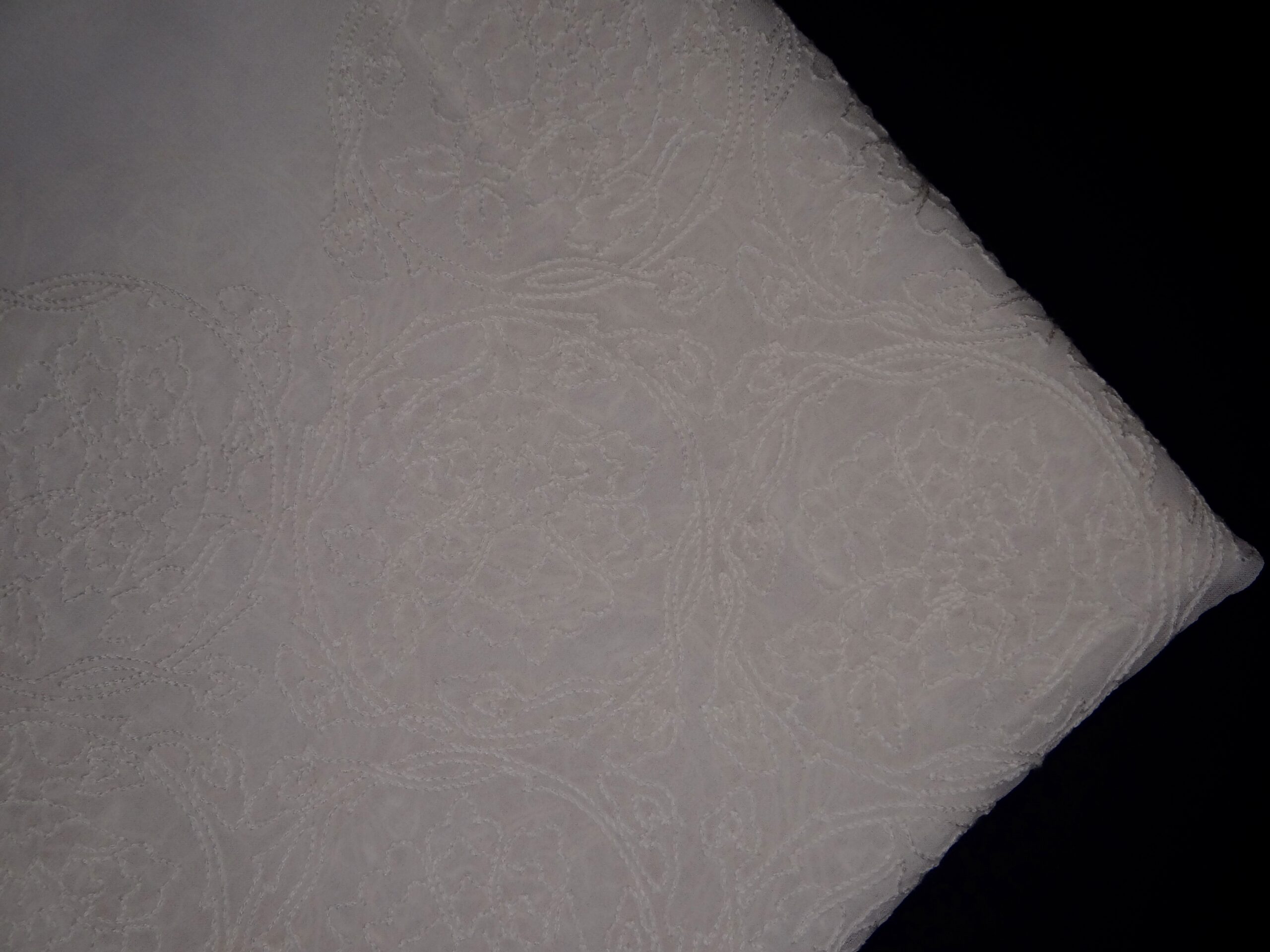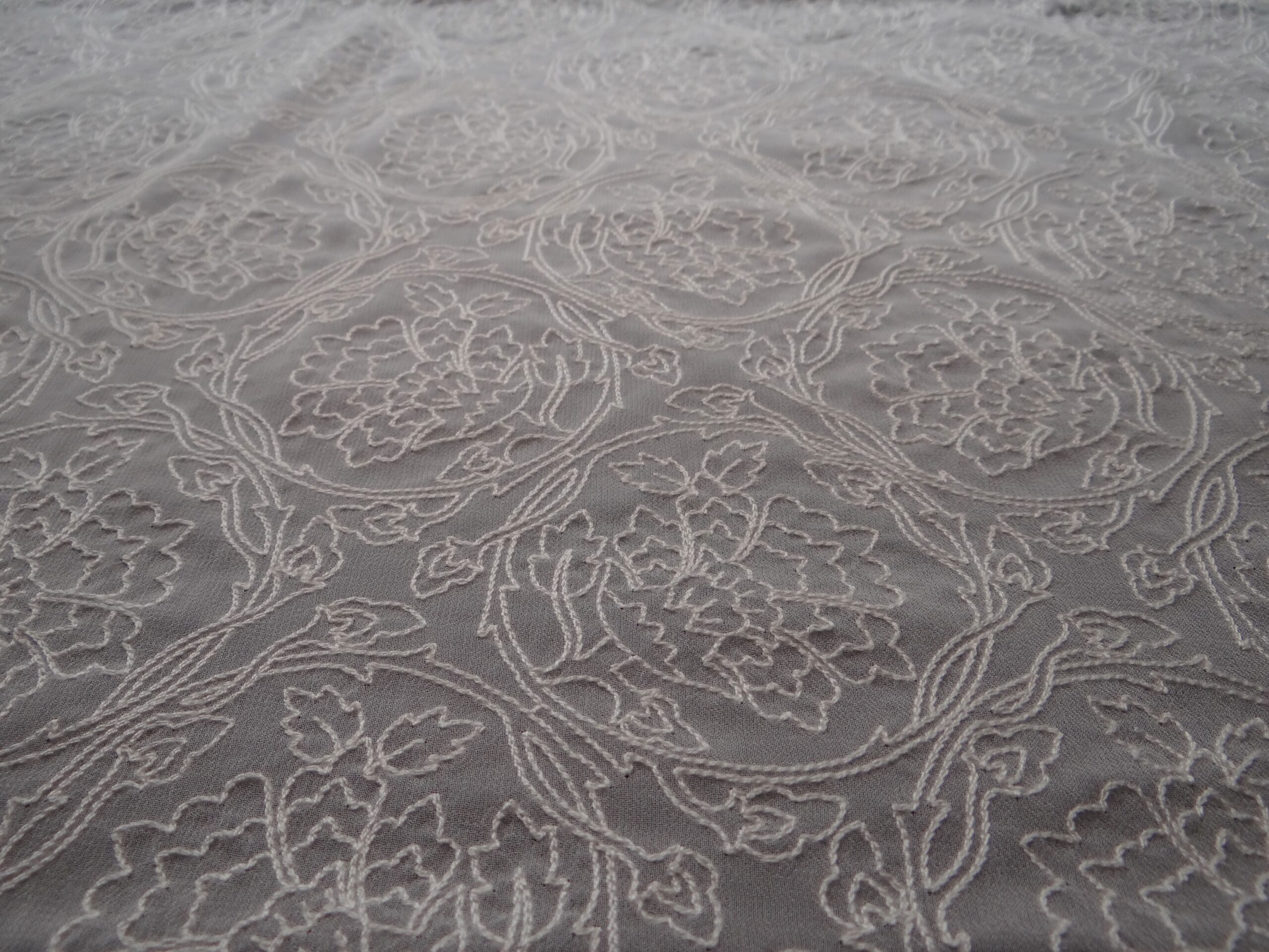 The embroidery of this fabric is subtle with circular patterns that make the fabric an impeccable pattern of grace.