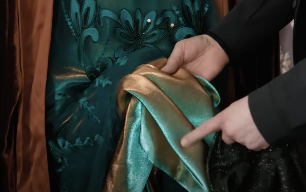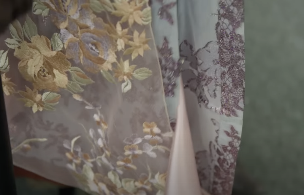 The costume designers wanted to bring back the Regency era but with a modern twist. To add to their touch, they ensured that all production was handmade. Nothing comes from a costume house. The minute details like the florals, hems, and the frills are all handstitched.